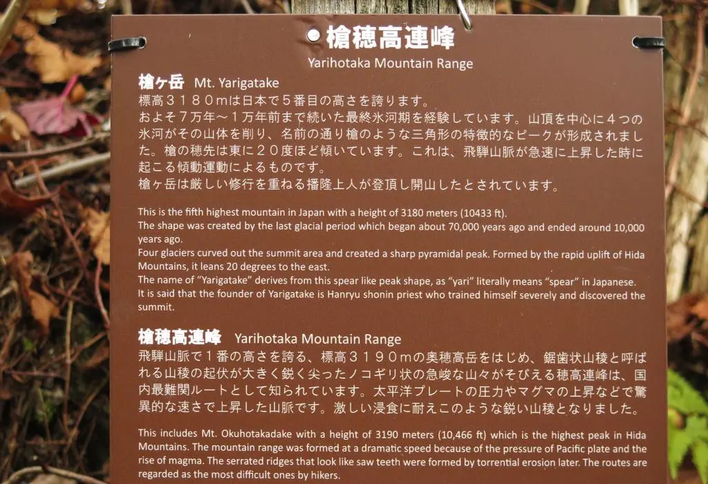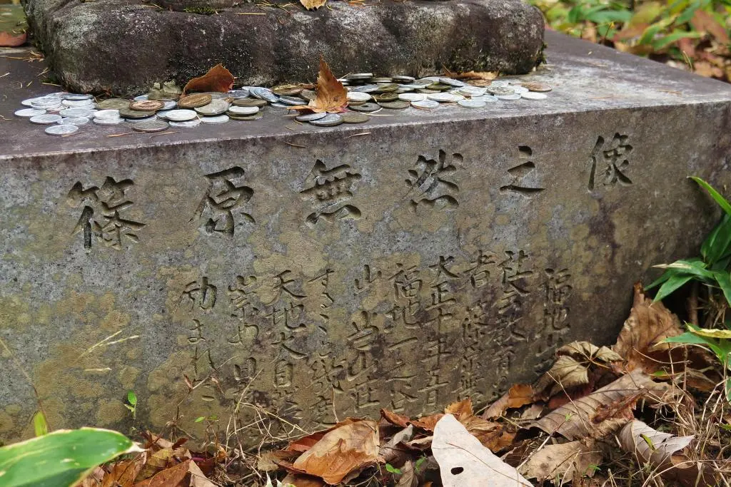 The text reads 篠原無然之像, or Statue of Shinohara Mugen, and it was erected in May 1921 or Taishi 10 大正10年, as written on the statue. Shinohara Mugen was a man was loved nature and often hiked the mountains of Hida-yuu. With his hikes, he educated people about the trees, flowers, and plants that grew on the mountain. Because of this, after he passed, his students made this statue of him.
