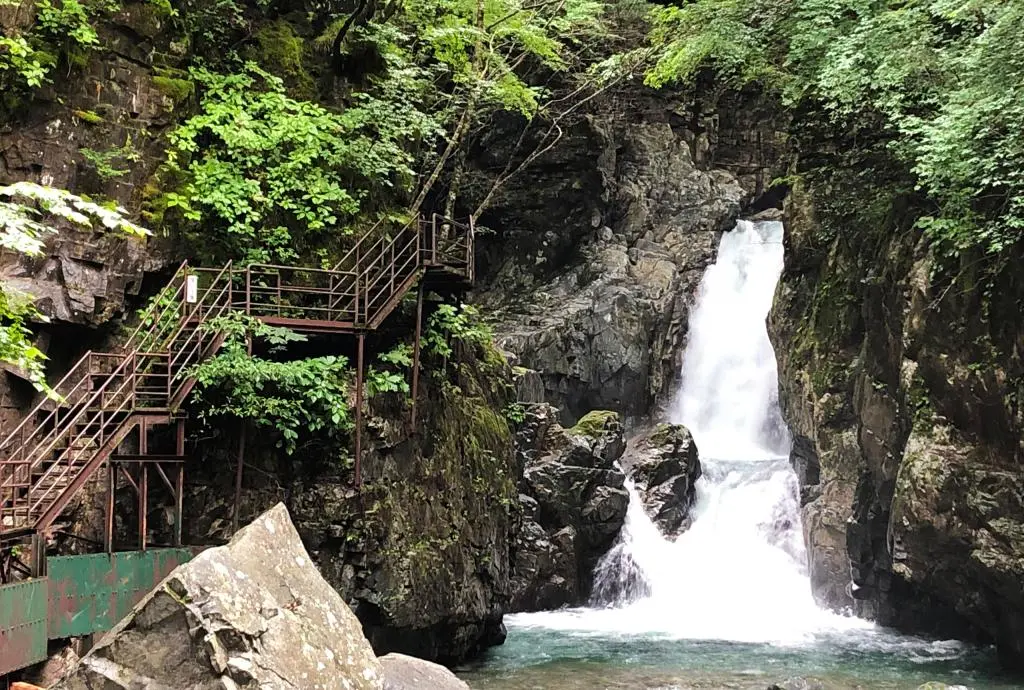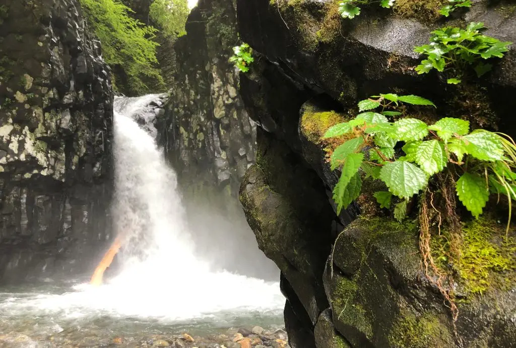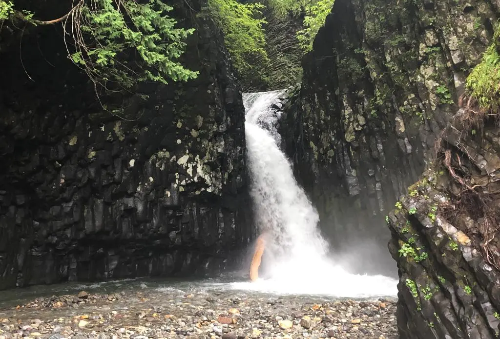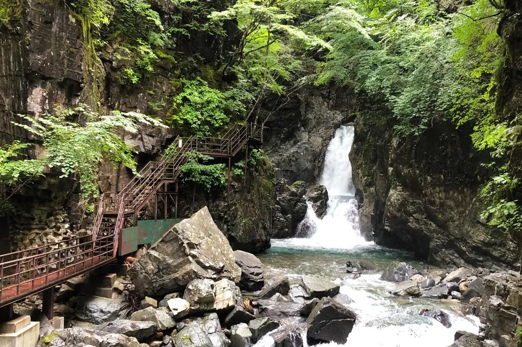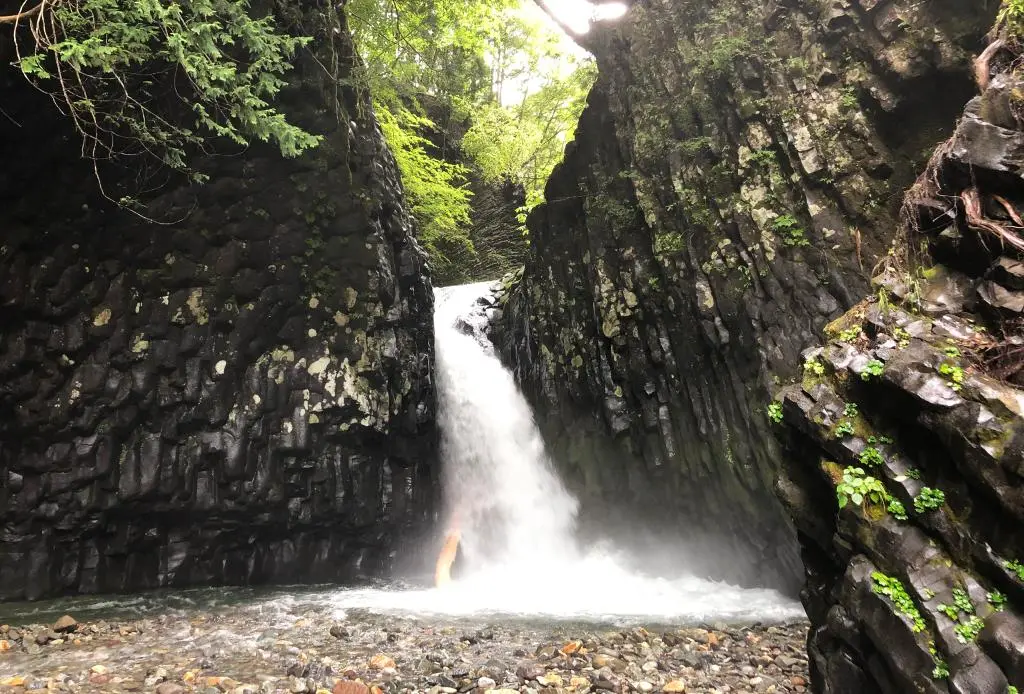My sister and niece visited in 2019, and we quickly hiking around the area to look at some of the easier waterfalls. We parked at Gandate Park がんだて公園, and hiked into the woods a little ways to see the Mistudake Falls 三ツ滝 and the Akaganetoyo Falls あかがねとよ.