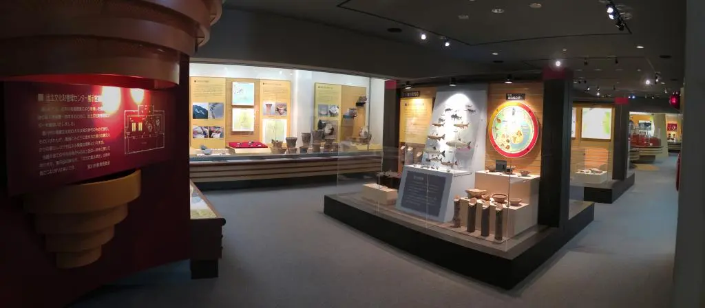 In the back, a hallway led to an annexing building that focused on archaelogical digs of the Miyagawa region. Many decorative pots had been reconstructed from their excavations, and believed to be from some time between the Paleolithic and Jomon periods of Japanese history. (14,000 years ago to 2500).