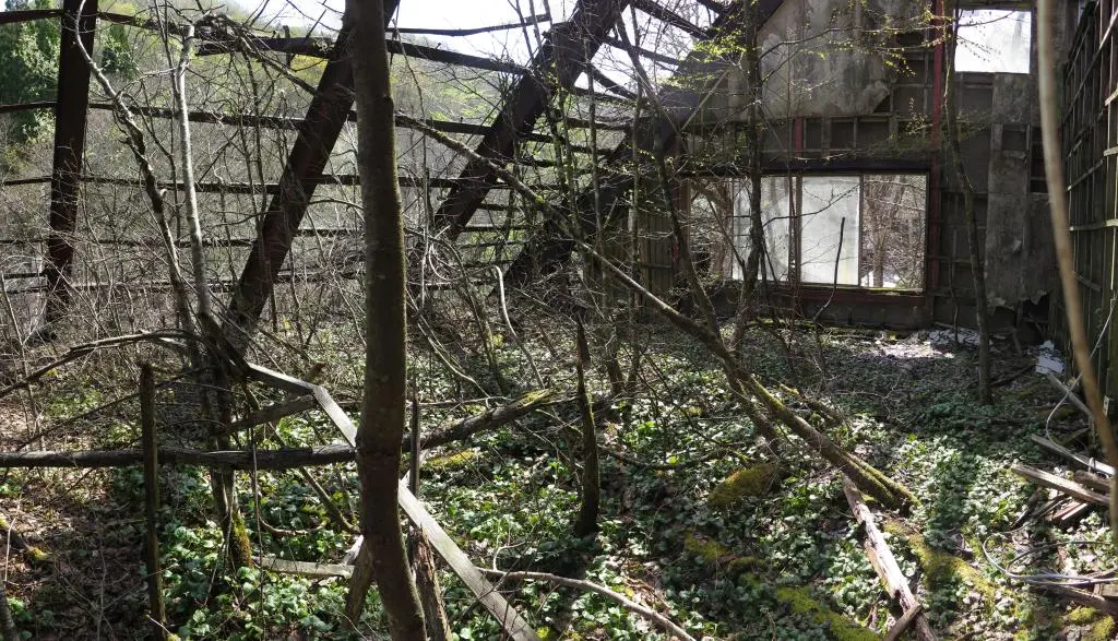 When exploring ruins, you have to be careful of a lot of different things. Depending on how decayed the building is, parts of the building could collapse when you walk on it. Exposed nails, wires, and glass could cut, puncture, and result in infection. There's also the danger of inhaling asbestos, mold, or any other toxic material used in the construction of older buildings that could now be exposed from the buildings decay.