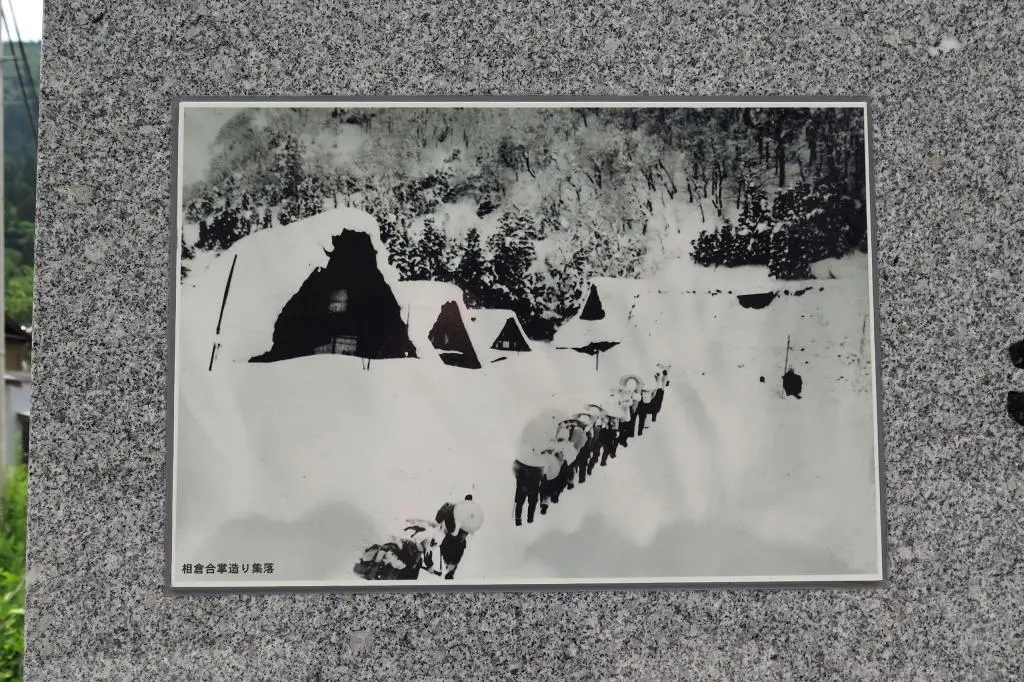 Until 1970, especially in the winter, because of the large amounts of winter mountain snow, mail was still carried by hand. Carriers of Johana Town would bring the mail to the Hosoo Postal Exchange where they would meet carriers from Taira Village. Both teams left at 9am and met around 1pm. They would exchange their packages and letters. Then, they'd go back down the mountain to their post offices. These folks were known as the Postal Corps 郵送隊.