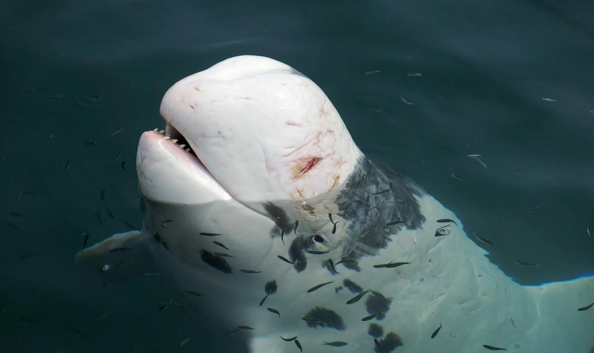 I was mostly paying attention to any scraps, scars, cuts, or bruises any of these dolphins and porpoises might have incurred because of captivity. This albino porpoise had an open wound.