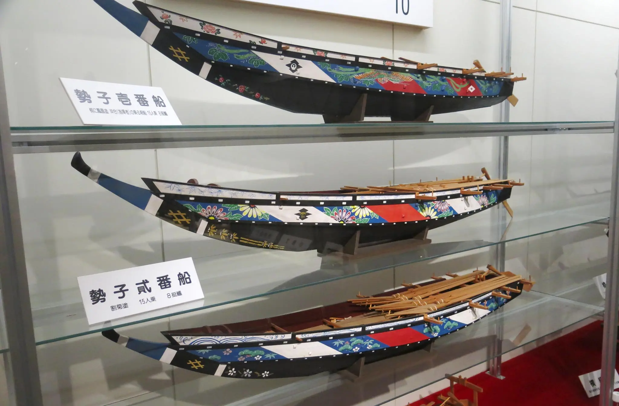 The hunters of the village, would get into smaller boats (models shown above), and extend very large nets between multiple ships. Once a whale was captured in the nets, and they could get close, the hunters repeatedly stabbed and skewered the beast with their spears. Eventually wounding it enough, to be pulled onto the beach, and killed.