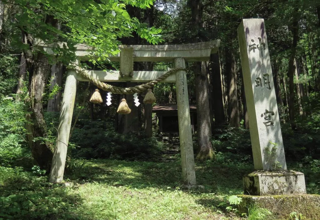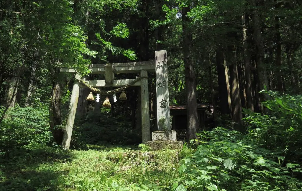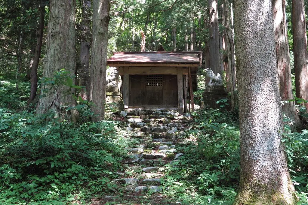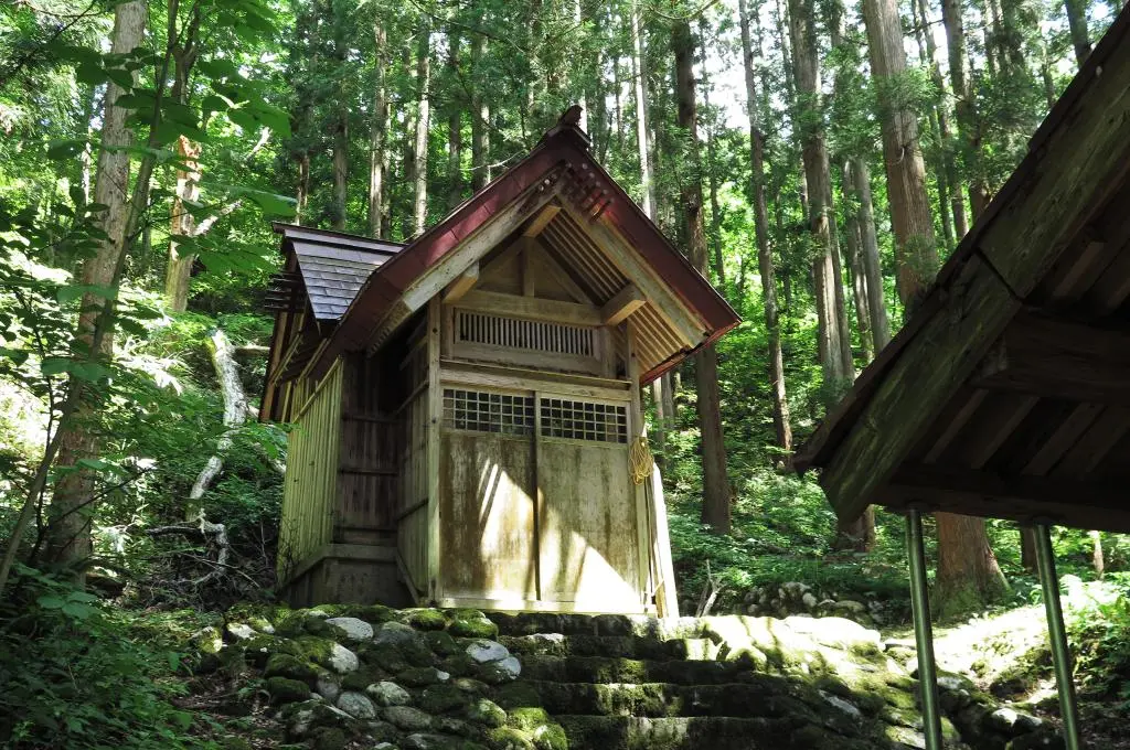 The Tanoshima Shinmei Shrine is all that remains of Tanoshima Village. The site of the village is along the Toga River going south up the mountain from Sakaue village. It's between the villages of Abetto and Taikanba.