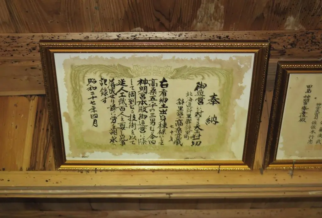 With no one left in the village, I'm not really sure who maintains this shrine. Inside the shrine, a plaque showing the names of all the Shinto priests lies on its side, and hasn't been updated in years. Perhaps the folks running the restaurant keep up the old rituals.